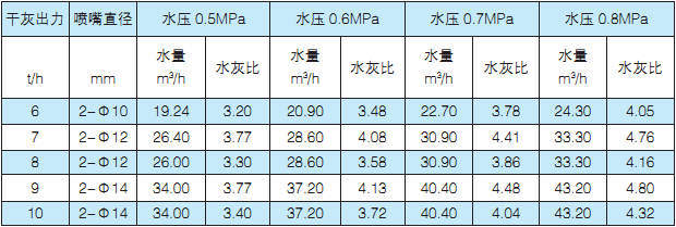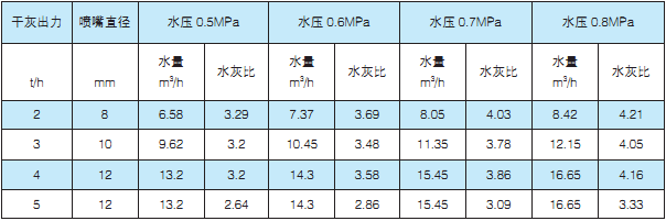 本产品用于除尘器灰斗下部,对除尘器排出的煤灰进行水灰混合.具有较好的灰水搅拌效果,水灰比可控制在3-4范围内,比老式的箱式冲灰器用水量少,一般可节省10-20%。